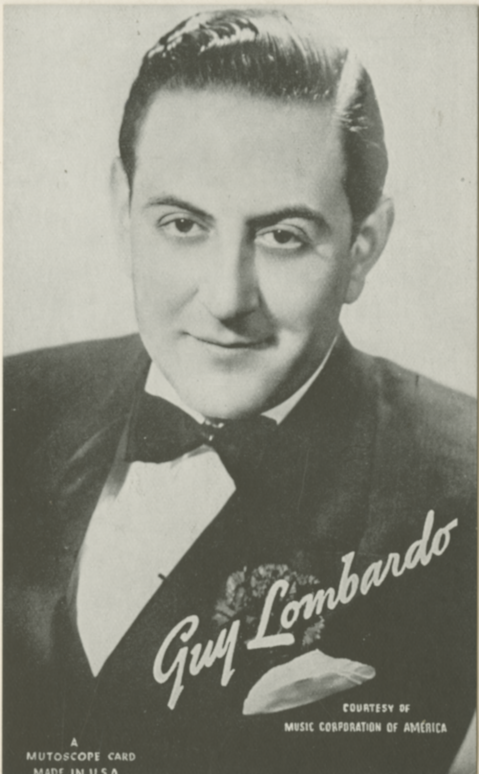 ![]() Photo of band leader Guy Lombardo. Image by Music Corporation of America-photo by Maurice Seymour, Chicago., via Wikimedia Commons. Licensed Public domain |