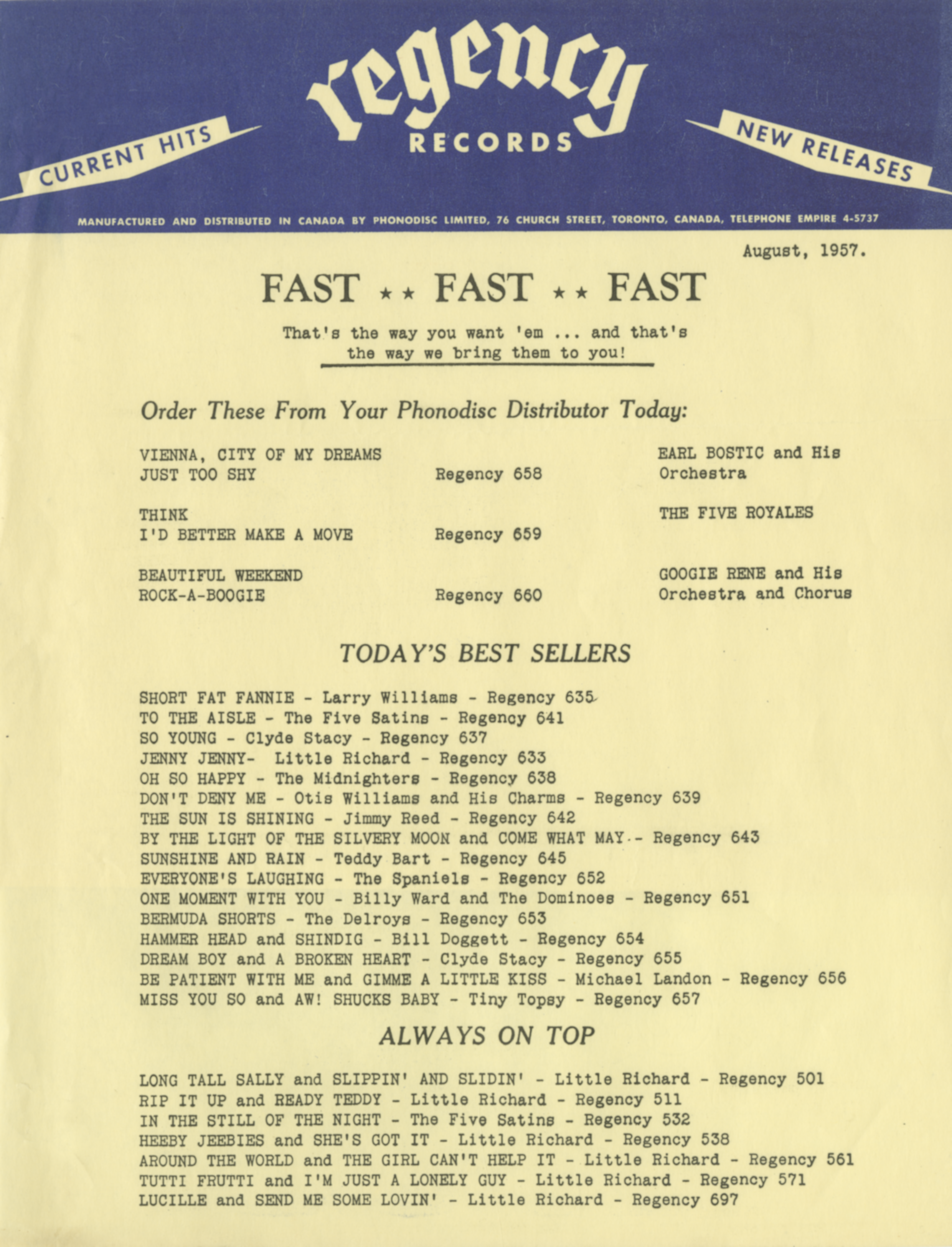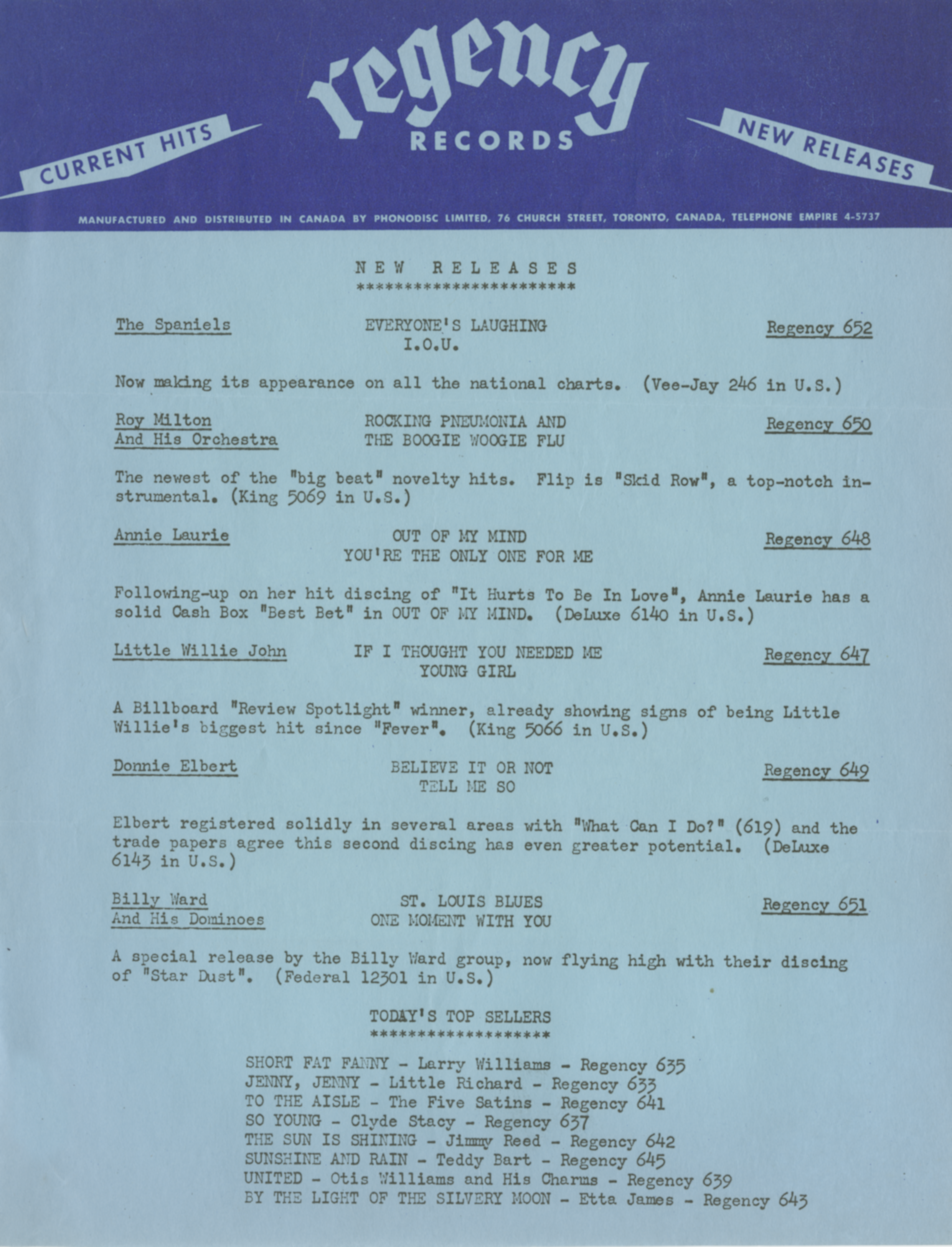 Regency is a record label represented in our collection.