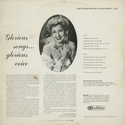 Jeanette MacDonald Sings Songs Of Faith And Inspiration
