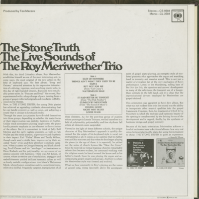 The Stone Truth The Live Sounds Of The Roy Meriwether Trio