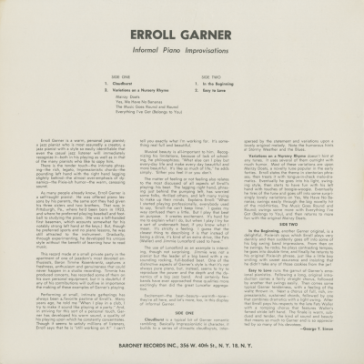 Erroll Garner Informal Piano Improvisations