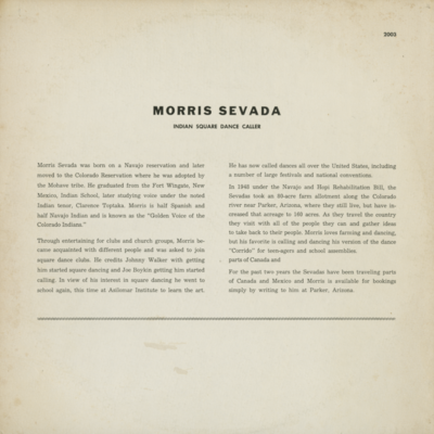 Morris Sevada Indian Square Dance Caller