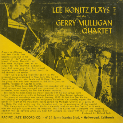Lee Konitz Plays With The Gerry Mulligan Quartet