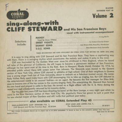 Sing Along With Cliff Steward Vol 2