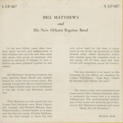 Bill Matthews And His New Orleans Ragtime Band