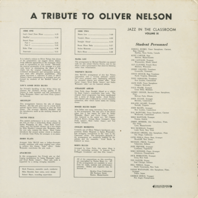 Jazz In The Classroom Volume IX A Tribute To Oliver Nelson