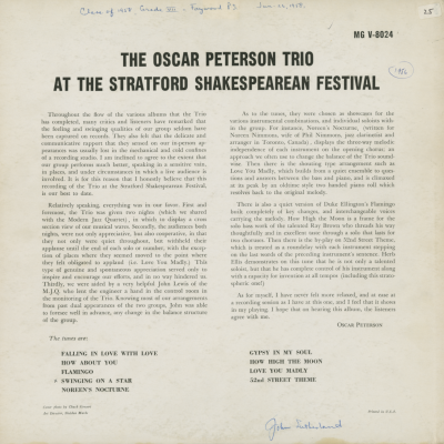 The Oscar Peterson Trio At The Stratford Shalespearean Festival
