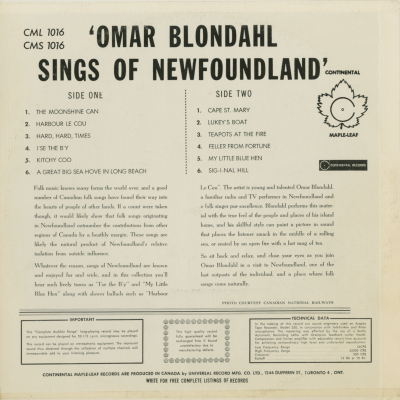 Omar Blondahl Sings Of Newfoundland