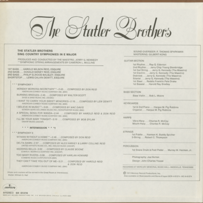 The Statler Brothers Sing Country Symphonies In E Major