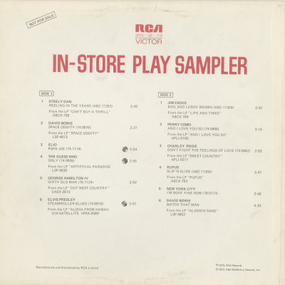 RCA In-Store Play Sampler Hits And Hitbounds May 1973