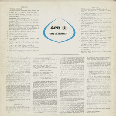 SPR 2 Some Cold Rainy Day Rare Blues Performances 1927-1933