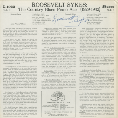 Roosevelt Sykes The Country Blues Piano Ace 1929 - 1932