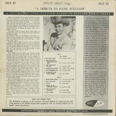 Eddie Dean Sings A Tribute To Hank Williams