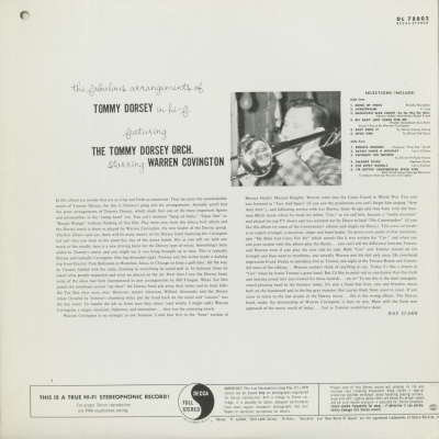 The Fabulous Arrangements Of Tommy Dorsey In Hi Fi