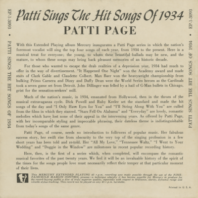 Patti Sings The Hit Songs Of 1934