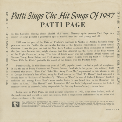 Patti Sings The Hits Of 1937