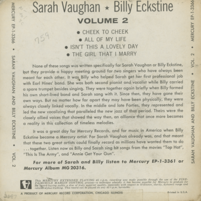 Billy Eckstine Sarah Vaughan Sing The Best OIf Irving Berlin Vol II