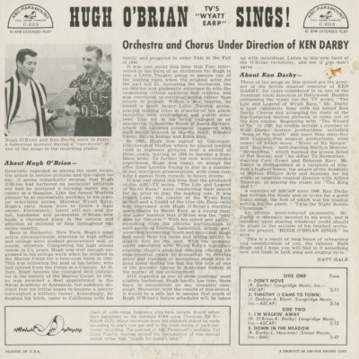 Hugh O'Brian TV's Wyatt Earp Sings Vol 3