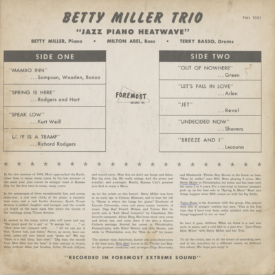 A Jazz Piano Heatwave Betty Miller Trio