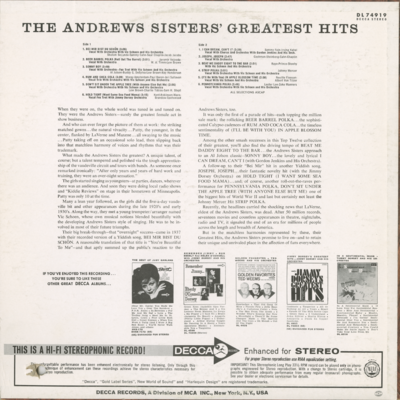 The Andrews Sisters' Greatest Hits
