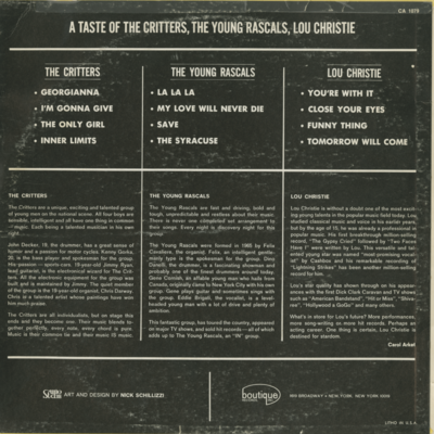 A Taste Of The Critters A Taste Of The Young Rascasl A Taste Of Lou Christie