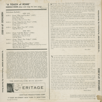 A Touch Of Rome The Lyrics And Music Of Harold Rome