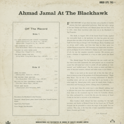 Ahmad Jamal At The Blackhawk