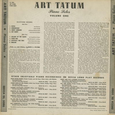Art Tatum Piano Solos Volume One