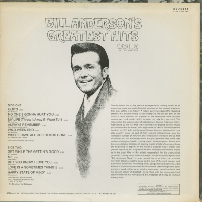 Bill Anderson's Greatest Hits Vol 2