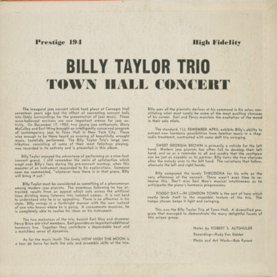 Billy Taylor Trio In Concert At Town Hall, Dec 17, 1954