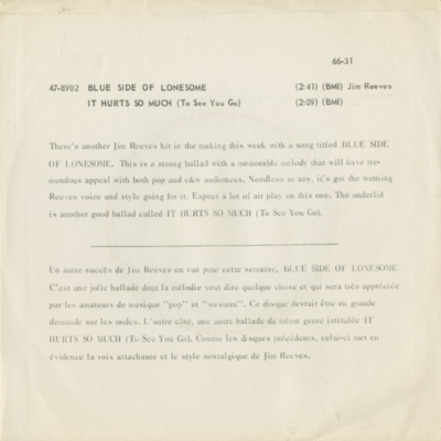 Blue Side Of Lonesome / It Hurts So Much