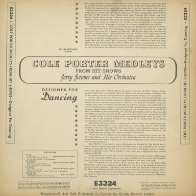 Cole Porter Medleys From Hit Shows Jerry Jerome & His Orchestra
