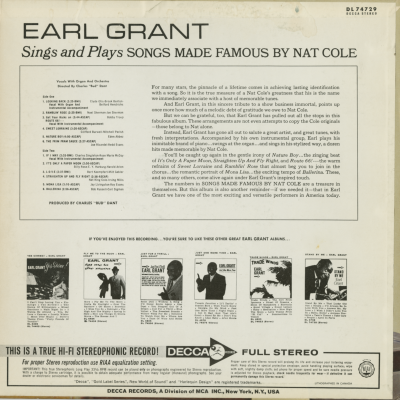 Earl Grant Sings And Plays Songs Made Famous By Nat King Cole