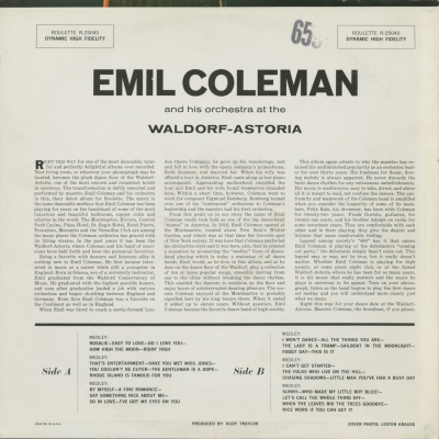 Emil Coleman And His Orchestra At The Waldorf Astoria