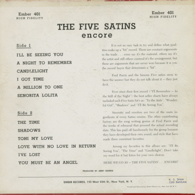 The Five Satins Encore, Volume 2