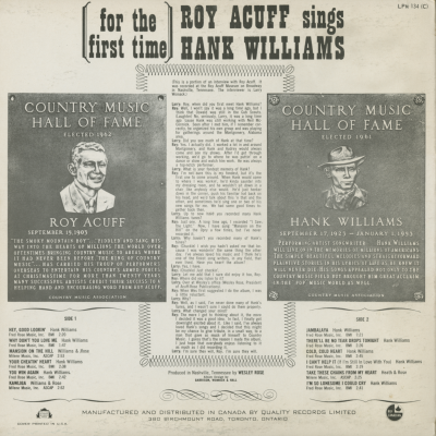For The First Time Roy Acuff Sings Hank Williams