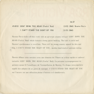 Goin' Down The Road Feeling Bad / I Can't Stand The Sight Of You