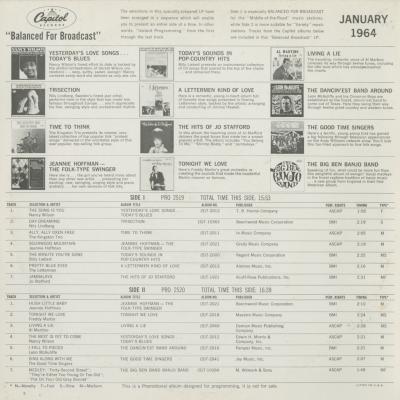 Great New Releases From The Sound Capitol Of The World January 1964