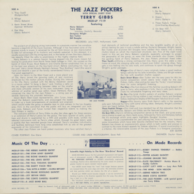 Harry Babasin And The Jazz Pickers With Special Guest Star Terry Gibbs