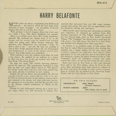 Harry Belafonte Sings Man Smart And Other Folk Songs