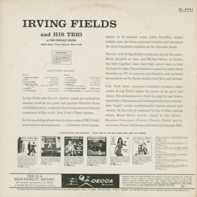 Irving Fields And His Trio At The Emerald Room