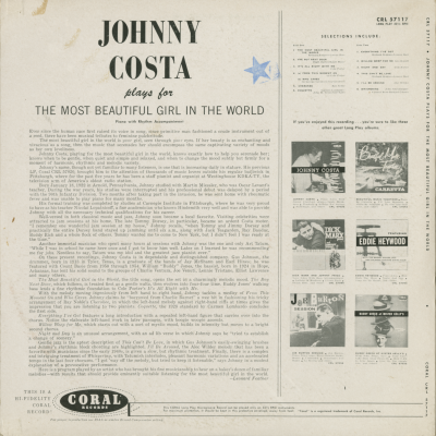 Johnny Costa Plays For The Most Beautiful Girl In The World