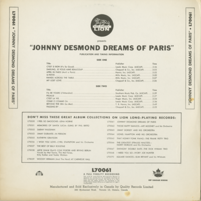 Johnny Desmond Dreams Of Paris