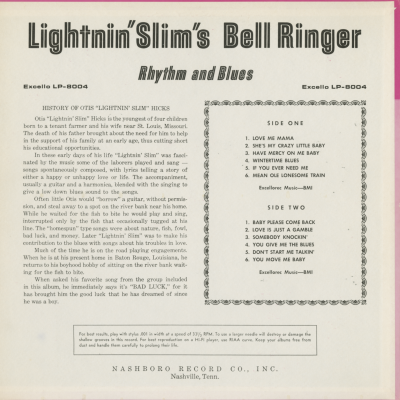 Lightnin Slim's Bell Ringer 12 Top Rhythm And Blues Songs