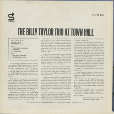 The Billy Taylor Trio At Town Hall