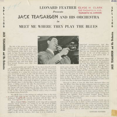Meet Me Where They Play The Blues With Jack Teagarden And His Orchestra