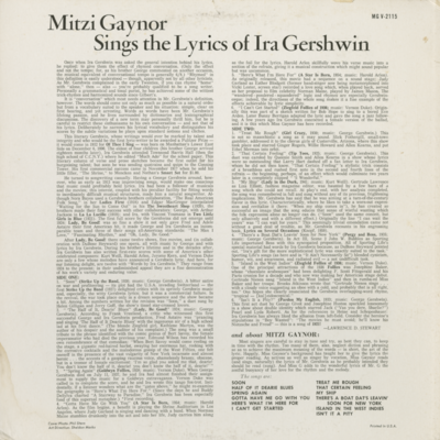 Mitzi Gaynor Sings The Lyrics Of Ira Gershwin