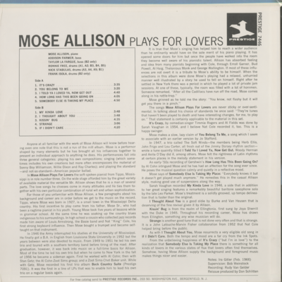 Mose Allison Plays For Lovers