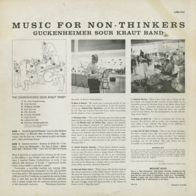 Music For Non Thinkers Guckenheimer Sour Kraut Band
