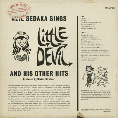 Neil Sedaka Sings Little Devil And His Other Hits